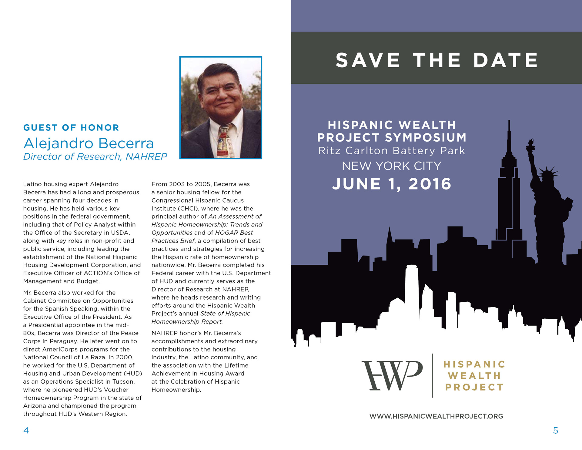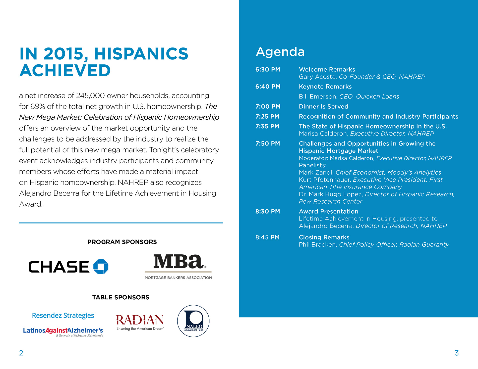 Program booklet created for the Celebration of Homeownership hosted by The National Association of Hispanic Real Estate Professionals.