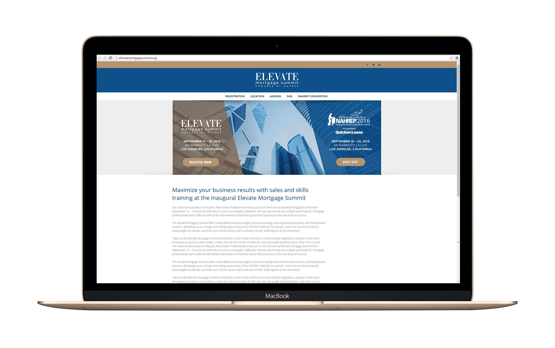Creation of a logo for Elevate Mortgage Summit, powered by The National Association of Hispanic Real Estate Professionals.